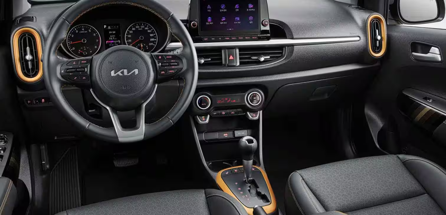 모닝의 내장은 블랙 인테리어와 운전석/동승석 선바이저, 플로어 매트가 포함되어 있습니다. 시트는 직물시트, 앞좌석 높이조절식 헤드레스트, 앞좌석 슬라이딩 헤드레스트, 뒷좌석 6:4 폴딩시트, 뒷좌석 높이조절식 헤드레스트를 사용합니다.